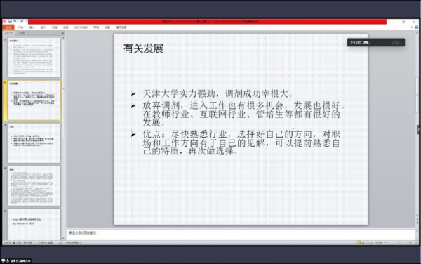 会议伊始,唐婧亚介绍本期推动会的会议背景,针对当前疫情影响下的就业形势、数学学院2019届毕业生就业情况、2020届毕业生就业现状等方面进行解读。会议中,她敦促毕业生要认清毕业生就业工作面临的严峻形势。通过对问卷调查结果的分析及2019届毕业生就业去向更加多元化的实际情况,她面向2020届毕业生当前深造、求职提出四点建议,即主动澄清深造动机、鼓励积极联系导师、合理调整就业期望、把握校院就业资源。为了毕业生更精准的了解学校、学院的相关就业资源,学工办将整理出的学校就业网站、公众号以及职业生涯类书单等资源分享给参会学生。