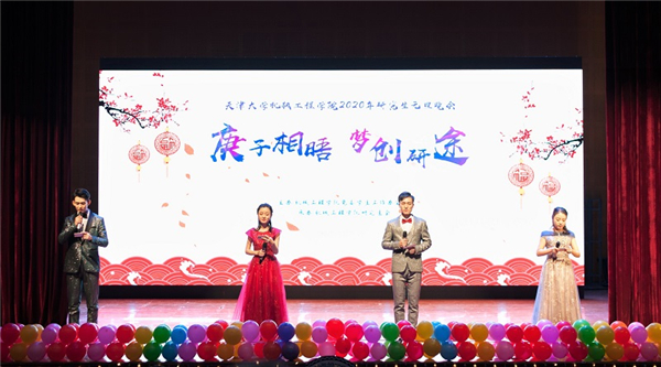 本站讯(通讯员 张建鹏)豕去春无限,鼠来岁有余。12月31日晚,由机械工程学院党委学生工作办公室主办,机械工程学院研究生会承办的“庚子相晤,梦创研途”2020年研究生元旦晚会在北洋园校区大通学生中心B区报告厅隆重举行。天津大学党委学生工作部副部长王开,机械工程学院院长王天友、党委书记孙月海、党委副书记刘岳、副院长曹树谦,厦门航空天津分公司市场部经理刘俊良,材料学院辅导员卫雅如,理学院辅导员刘培毅,机械工程学院专业教师李佳、张赫晨,综合办公室副主任陈垚,学生工作办公室全体辅导员和广大研究生同学400余人共同观看此次晚会。