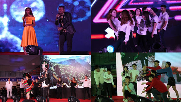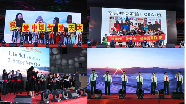晚会在马来西亚留学生气势磅礴的二十四节令鼓《新年的祝福》中拉开了帷幕。来自约旦、哈萨克斯坦、尼日利亚和中国的四位大学生主持人分别用母语问候了全场的观众。整场晚会由三个篇章25个节目组成。第一篇章“多元文化交汇融合”中,来自朝鲜、蒙古、也门、莫桑比克、萨摩亚、缅甸、巴基斯坦、瓦努阿图的留学生们载歌载舞,将各国的风土人情淋漓尽致地展现在观众的面前。第二篇章“我爱中国我爱天大”中,留学生们以小品、诗朗诵、歌舞等多种形式抒发了自己对天大、对中国炽烈而深厚的情感。其中小品《CSC学生的一天》幽默生动地还原了预科生的学习生活,引发了台下观众的阵阵笑声。津巴布韦留学生玛丽温柔而细腻的诗朗诵,完美的演绎了《再别康桥》依依惜别的深情。第三篇章“五洲同庆四海一家”里,来自五大洲的青年学子们用歌声汇聚欢乐,用舞蹈展示青春风采,曾在天津大学举办男高音独唱音乐会的喀麦隆留学生乔治和莫桑比克留学生安吉拉共同演唱的歌曲《shallow》更是将晚会的气氛推向高潮。以新年联欢会为契机,各国的留学生们抒发自己对中国的情感,编织自己关于中国的梦想,用才艺诠释对中国文化的认知与欣赏,满怀喜悦迎接崭新的一年。