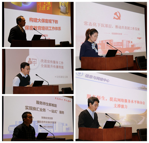 会上共有来自机关各部门的23个案例参加评选交流。人事处“深化人事制度改革”围绕学校人事改革摸问题找原因,从制度改革等方面解决目前制约我校教师队伍建设的若干问题;教务处“把自习室装进手机里”,自主开发自习室查询小程序,重点解决学生找自习室难的问题;科研院“精准服务,助力一流基地建设”通过实现工作前置化、服务专业化、过程精细化,助力学校高水平科研基地建设;保卫处“深入调研,立行立改”用实际行动整改问题,营造平安和谐校园交通环境;财务处联合国际处“服务师生解难题”实现换汇业务“一站式”服务;党办校办做出三个改变,实现会议室服务“零跑腿”;宣传部“改进宣传服务工作”,打造立体宣传、传播天大声音、开发三大平台,全面提升传播效能;学工部“俯下身子找问题,迈开步子促整改”,通过调研、沙龙活动直击问题,把服务基层变成提高工作水平的原动力;组织部、统战部和民主党派办“以扎实的整改举措促作风上水平”,做到深入基层、优化服务、统筹协调,切实改进工作作风;发展战略研究中心“攻坚克难深挖数据内涵,问题导向服务一流大学建设”,实现学用结合,找准问题症结,为学校发展把准战略方向;工会通过全方位征询、零距离服务,创新式调整、菜单式宣讲,改进工作作风,四维提升服务教职工能力和水平;国际处“服务育人,多措并举”,建设全球视野拓展工程,积极培养具有全球视野的拔尖人才;基建处“守初心,担使命”,通过以学促改、深挖问题、集中宣讲、深入调研,不断规范流程管理,提升修缮工作水平;纪委监察室建立“理论分组学习机制”,从顶层设计、学习形式、学习效果上下功夫,提升党风廉政建设学习效果;研究生院坚持“以师生为中心推进信息化”,查摆问题,夯实基础,真抓实干,精准强化管理服务能力,助力研究生培养质量提升和治理结构优化;保密办通过“构建大保密观下的保密教育培训工作体系”,做到全员覆盖、提前防范、注重实效,提高保密能力,为学校事业发展保驾护航;人文社科处通过“改进工作作风、深度服务基层”,加强调研学习,围绕学校中心工作促进社科繁荣;审计处“树新风、增实效”,盯紧问题制定整改措施,即知即改付诸行动,开拓审计服务基层新局面;校团委“常态化下沉基层”,开展深入学习,加强基层调研,聚焦问题立查立改,推动共青团工作发展;校友基金事务处“重学习,强作风,促发展”,以党组织建设激发活力,提供秩年返校服务凝聚校友力量,募集资源助力学生成长、实现人才强校;信网中心深入调研梳理问题,运用多元手段完善网上服务,切实做到了“服务师生,提高网络服务水平和办公支撑能力”;招标办立足五个方面,简化科研项目采购流程,采用“特事特办”给科研急需项目再“松绑”;资产处用精准服务打造“物资采购+平台融通2.0”,实现资财融通及物资采购统一结算,让信息多跑路,让师生少跑腿等。