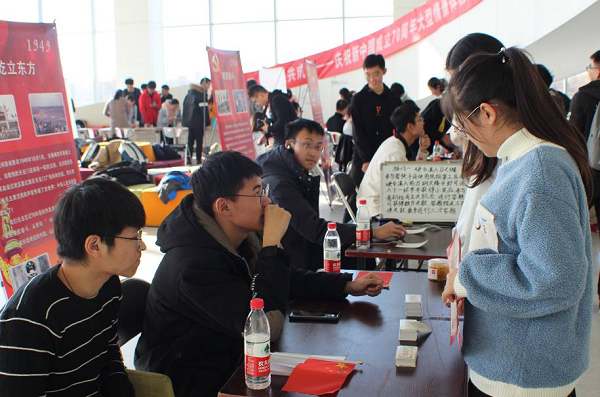 本站讯(通讯员 杨威 陈润泽 摄影 杨珂 王博)为了庆祝新中国成立七十周年,引领新时代青年学子共同见证祖国取得的发展与进步,日前,由材料学院、数学学院、理学院社研会主办,天津大学社研会(本科生部)协办的大型情景体验主题教育活动——我与祖国共成长,在大通学生中心A区大厅顺利开展。同学们通过角色扮演与祖国共成长的同时,也在重温新中国这70年来可歌可泣的发展历程。