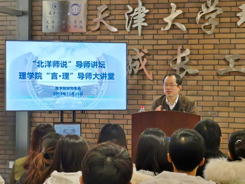 本站讯(通讯员 刘培毅)2019年11月28日上午,第十期“北洋师说”导师讲坛暨理学院“言•理”导师大讲堂于32教二层理学院学生成长工作站成功举办。理学院院长李振结合个人成长和科研经历为同学们带来了题为“当代研究生科研创新精神的培养与践行”主题讲座。