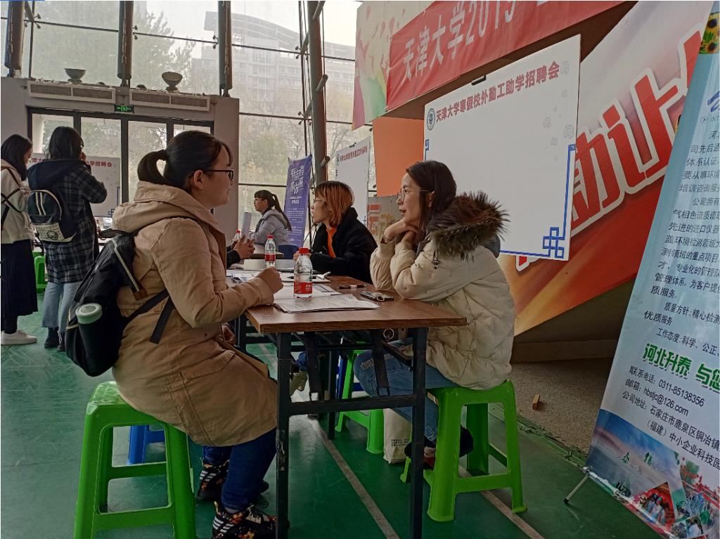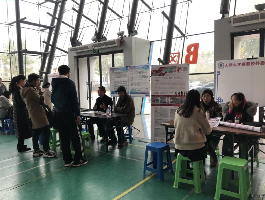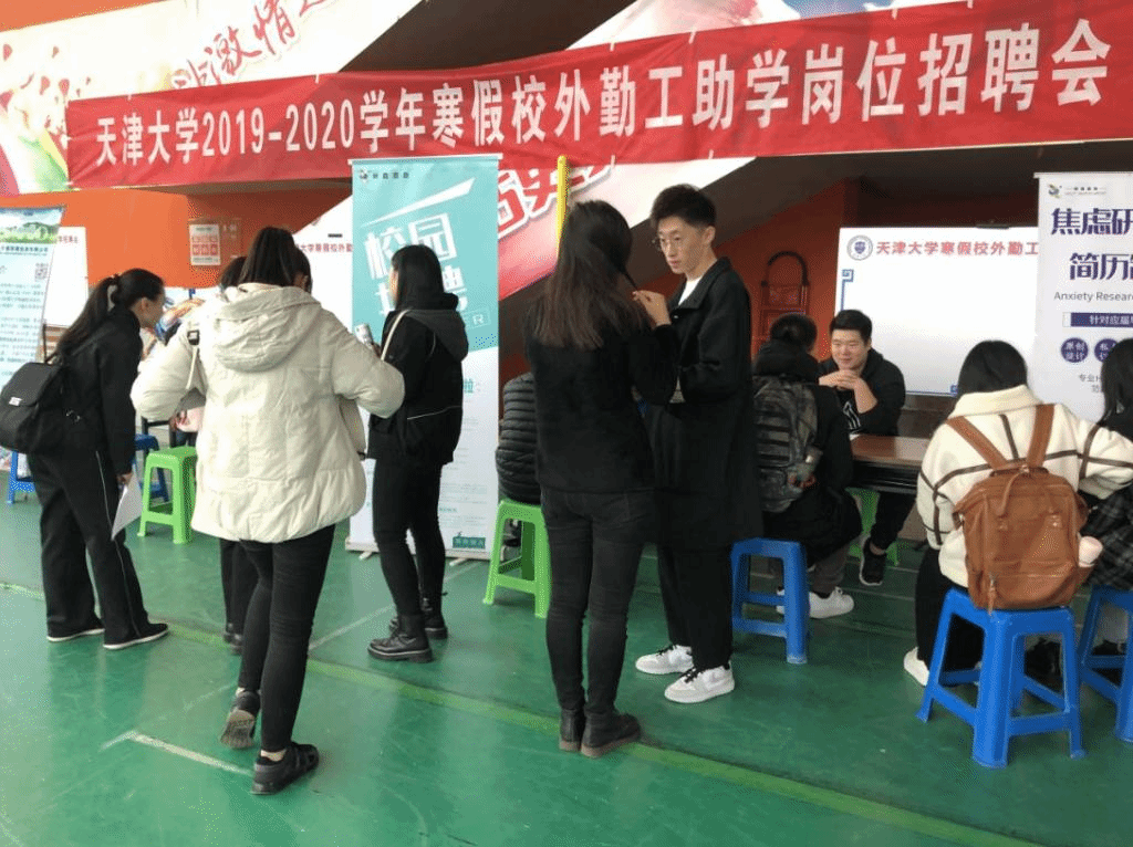 本站讯 11月23日上午,天津大学在卫津路校区体育馆举办了2019-2020学年寒假校外勤工助学岗位招聘会。本次招聘会共吸引校外十余家用工单位参与,提供30多个类型的校外岗位供学生选择。200余名在校生积极参与,学生根据自己的专业和求职需求自由选择。