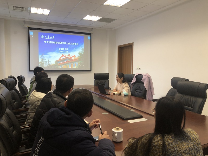 本站讯(通讯员 刘培毅)为提升辅导员研究能力和业务能力,促进辅导员专业化、职业化、专家化发展,2019年11月18日下午,理学院学生工作组邀请学工部研究生教育管理科科长王茜分享了辅导员的成长感悟和提高自身研究能力的思考。理学院党委副书记王作金以及理学院全体辅导员参加分享交流。