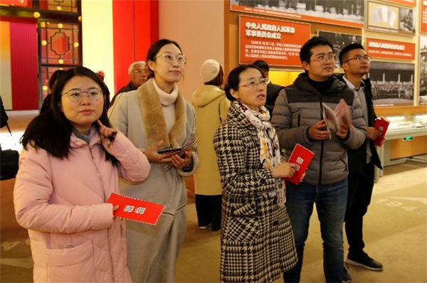 本站讯(通讯员 宇文慧)11月14日,管理与经济学部组织师生集体参观“伟大历程 辉煌成就——庆祝中华人民共和国成立70周年大型成就展”,巩固和深化“不忘初心、牢记使命”主题教育成果,加强党史和新中国史教育,使广大党员干部加深对新中国成立70周年取得的成就、发生的历史性变革的切身感受,大力弘扬爱国主义精神,进一步增强“四个意识”、坚定“四个自信”、做到“两个维护”。管理与经济学部党委书记马寿峰、党委副书记袁婷,部分教师代表、退休教师代表、学生代表参加活动。