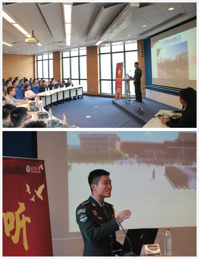 11月9日下午,位列阅兵院校科研方队2排22号的2013级国防生校友曹鹤译回到母校,在卫津路校区会议楼第八会议室为师生们分享了他亲身参与国庆阅兵的故事。中国人民解放军驻天津大学后备军官选拔培训工作办公室主任汪命锁上校、干事吴雷、干事曲彪、天津大学武装部朱丙锋、主讲人曹鹤译校友的辅导员任丽洁老师以及智算学部学生党建中心指导教师伍雨辰也参加了本次分享会。本次分享会由党委学工部主办、智算学部学生党建中心承办。