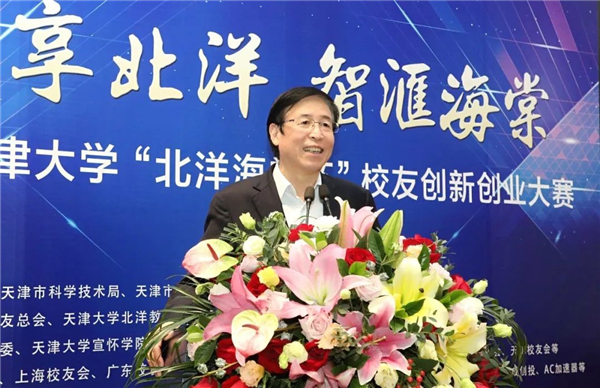 天津市科技局党委书记、局长戴永康作为天大校友表达了对天大的热爱,肯定了天津大学对天津市科技创新的贡献,希望天津大学“北洋海棠杯”校友创新创业大赛能融入天津市创新创业大赛体系,希望更多的人才、研究成果通过创业支持地方经济发展。