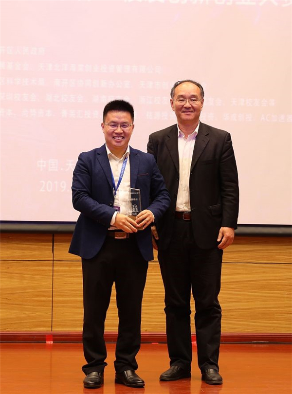 南开区副区长罗进飞、校友总会秘书长潘峰为一等奖获得者颁奖