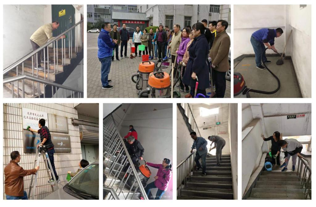 11月2日上午9时,所有在职党员在南开工业园集合,公司董事长兼总经理高玉成同志也以普通党员身份参加了活动。大家拿起事先准备好的拖把、扫帚、水桶、抹布、吸尘器等工具,分组合作、齐心协力,从清理楼道垃圾、吸取尘土,到擦拭楼梯扶手和楼道标语,高效、有序地将1号楼和2号楼的所有楼梯、扶手等打扫的干干净净,不放过任何可能被忽视的卫生死角。党员同志们用勤劳的汗水换来了广大职工群众良好的办公环境,充分发挥了党员不怕脏、不怕累的奉献精神。