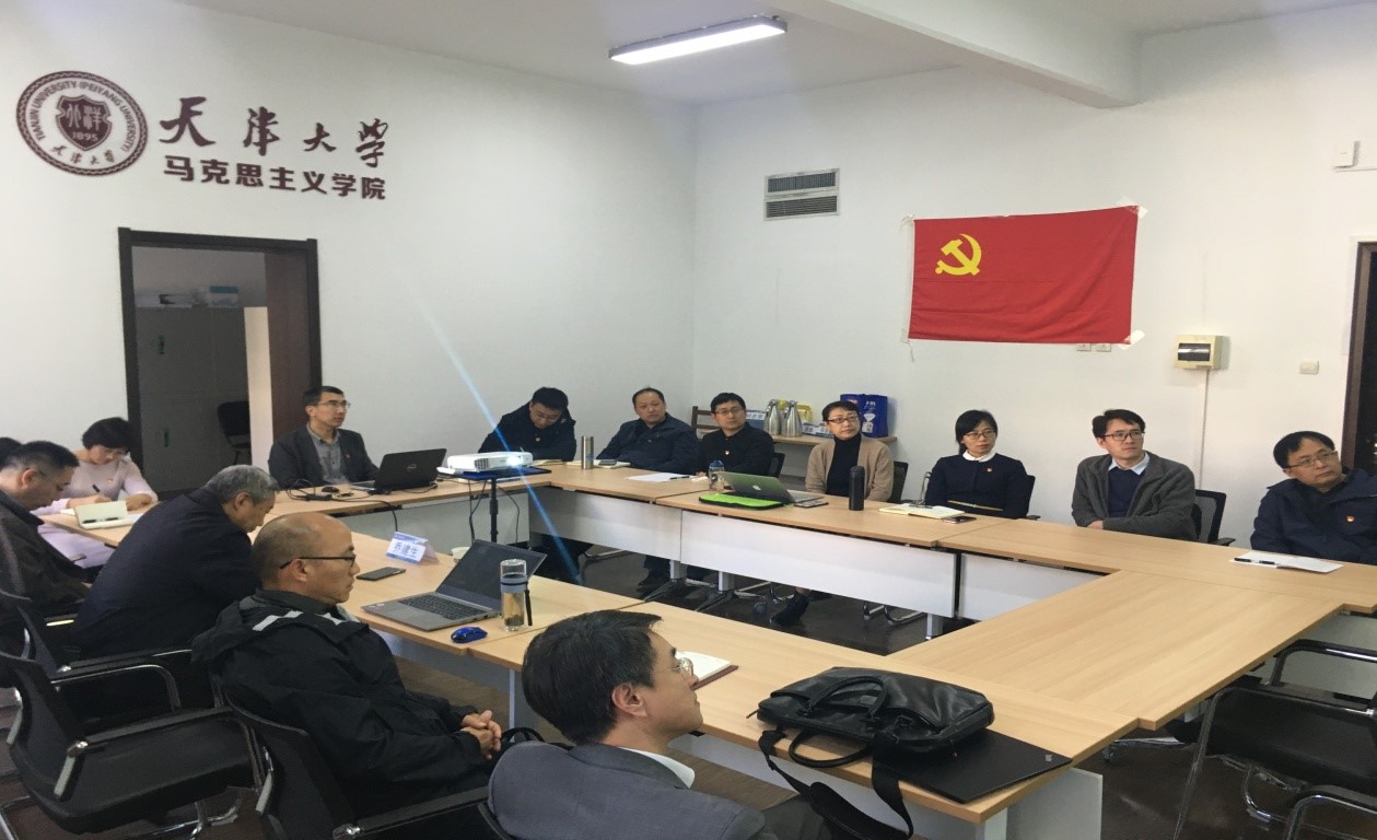 本站讯(通讯员 邢卫红 马明 闫涛)10月31日下午,马克思主义学院党委组织召开“不忘初心、牢记使命”主题教育专题党课,党委书记徐斌主讲。学院党委委员、教师支部书记、教研部主任、“课程思政”示范课共建教师代表参会。天津大学“不忘初心、牢记使命”主题教育第二指导组组长乔建生出席。