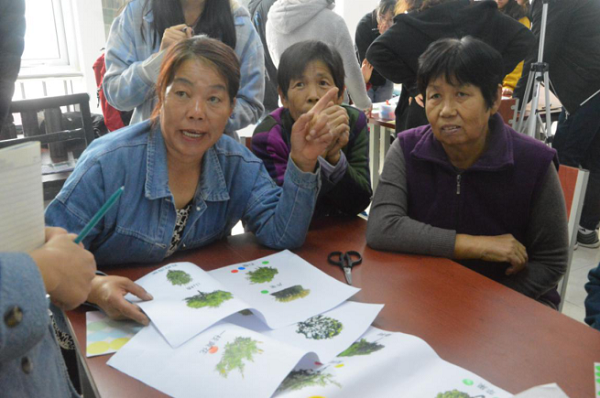 同学们分组对汇总整理的成果进行了汇报,随后和村民一起做需求讨论、广场生活场景的筛选。通过卡片向村民展示广场愿景和心中希望种植的树木,通过统计,最终选择的结果将在广场的设计方案中表达。运用轻黏土制作桌椅、廊架等设施,通过“摆一摆”环节将村民意见整理为广场上具体的设施配置。