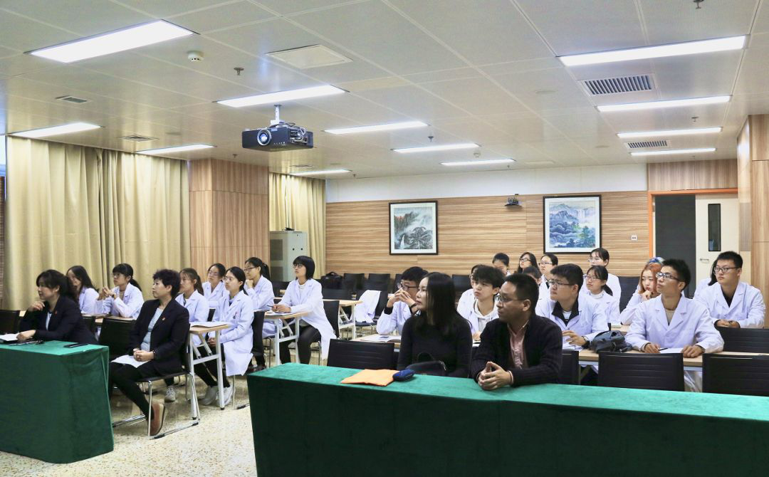 郭妍对医学部临床学子的到来表示欢迎,她表示早期接触临床课程得到了医院各层面的高度重视,并为此策划了详实的教育方案,设置了丰富的教学环节,涵盖医院发展简介、特色科室参观、诊疗教学观摩等。紧接着她介绍了天津医院的组织架构、科研教学、学科建设、发展规划等情况。她指出,作为医者应时刻铭记“一切以服务患者为中心”的服务宗旨,时刻坚守着“立身以德、待人以仁、虚心笃学、博施济众”的信念。天津医院科教科科长武丽丽介绍了教学情况以及此次参观实践的主要内容。