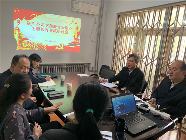 本站讯(通讯员 张新生)为深入开展“不忘初心、牢记使命”主题教育,资产公司党支部与保密办于2019年10月23日联合开展“不忘初心、牢记使命”主题教育交流研讨会。校长助理、资产公司党工委书记刘宁、资产公司总经理孙永利、保密办副主任王硕、保密干部刘丽丽及资产公司党员同志出席了研讨会,会议由刘宁主持。