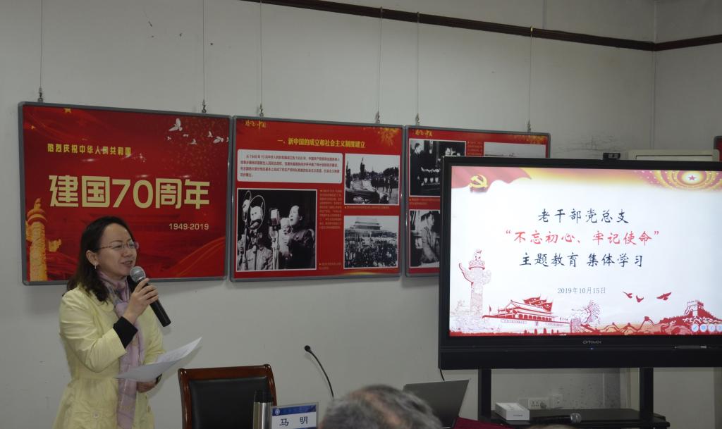 老干部党总支书记汪菲在总结讲话中指出,当前我校正积极开展“不忘初心、牢记使命”主题教育,恰逢新中国成立70周年,凸显了主题教育意义重大,使命非凡。她结合习近平总书记在今年召开的学校思政教师座谈会上的讲话强调了教好思政课的重要性,并感谢马明老师的精彩讲解,帮助老同志更加深刻的学习领会习近平新时代中国特色社会主义思想的精髓,进一步深化了主题教育的实效。