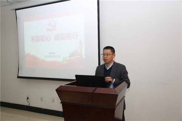 本站讯 (通讯员 赵静)10月17日,为学习贯彻习近平总书记主题教育工作会议的精神,推进“不忘初心、牢记使命”主题教育深入开展,促进事业发展及学生培养工作与党建工作的深度融合,区域发展研究院(以下简称区域院)党工委组织区域院机关党支部、滨海院教工党支部、武清院教工党支部、武清院2017级研究生党支部、区域院2019级硕士生滨海院第一党支部在滨海工业研究院校区开展“不忘初心、牢记使命”主题教育。区域院党工委书记王寒、院长杨明海、副书记、副院长王春玲、副院长宋叙言出席活动。主题教育活动由王寒主持。