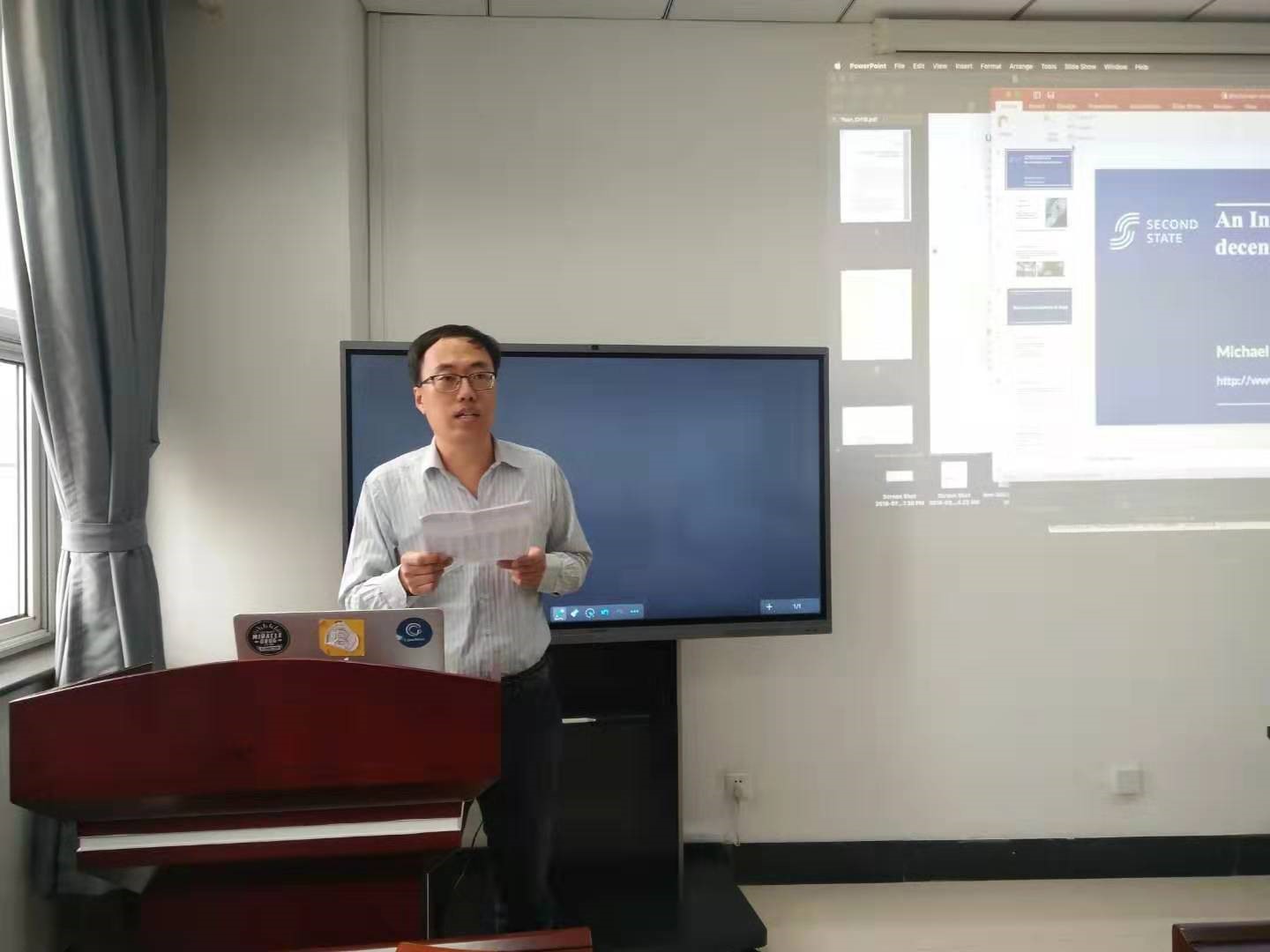 本站讯(通讯员 孔涛)2019年10月16日,区块链资深专家、Second State公司创始人Michael Yuan博士受邀做客天津大学滨海名师讲堂,在滨海院校区309教室带来了名为《如何快速入门区块链开发》的主题讲座。滨海工业研究院院长助理陈星,滨海区块链技术产业联盟主席朱立峰,企业代表丘比特链天津区负责人白剑雄、建科工程设计咨询总经理刘东、吉林商会副会长奥林集团总经理宋海涛、联云智科(天津)科技有限公司总经理陈岩、瑞达装饰有限公司总经理苏连坡、鸿大囯际贸易有限公司(滨海商品交易网)总经理王婧羽,以及智算学部任课教师汤善江出席了本次讲座。讲座由滨海工业研究院副院长(挂职)王海主持。