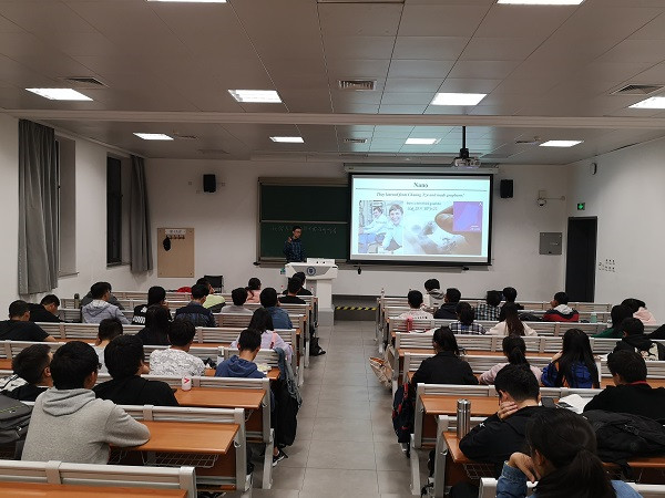 胡适从庄子所言“一尺之棰,日取其半,万世不竭”引入,介绍了石墨烯的发现和制备,通过物理学家安德烈•盖姆此前曾获得过搞笑诺贝尔奖的这项研究告诉同学们要有想法并敢于实践。随后介绍了新型催化剂的生产和使用;可再生能源与电源的生产结合;小型器件热电效应效率不高的问题以及未来的发展前景以及材料的纳米化相关发展领域。胡适提醒同学们一方面要理性看待重复试验,因为重复试验是实验研究的基础;另一方面要有自己的独立思想、不盲从,学会通过思考解决问题。