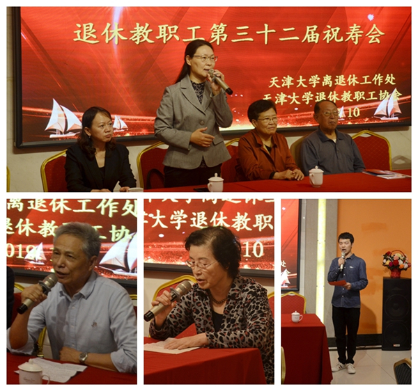 本站讯(通讯员 王小轩)2019年10月10日,天津大学离退休工作处与天津大学退休教职工协会在后勤保障部会议接待中心为123名今年刚满70周岁的退休教职工隆重举行第32届“祝寿会”。这些与新中国同龄的老同志们欢聚一堂,喜气洋洋,以激动心情共庆新中国成立70周年。
