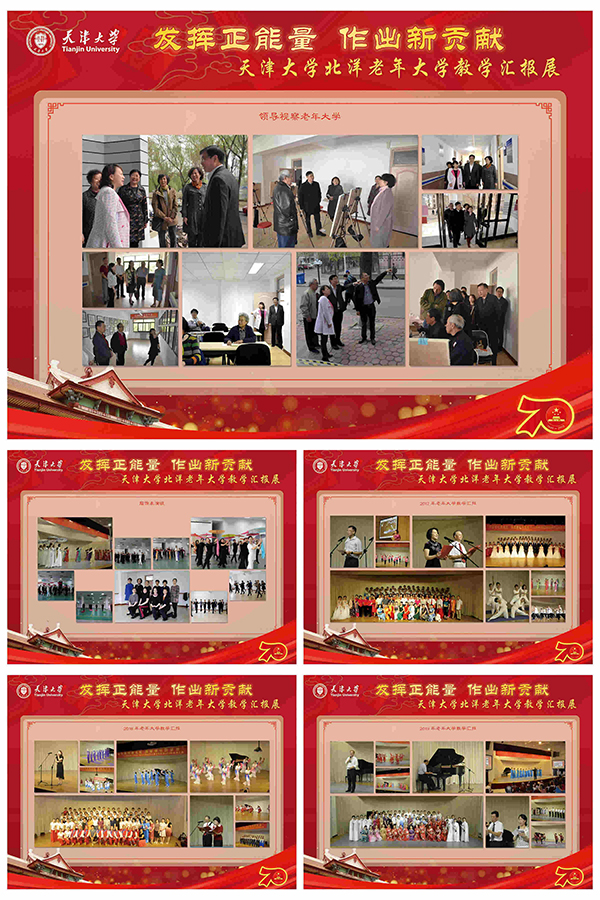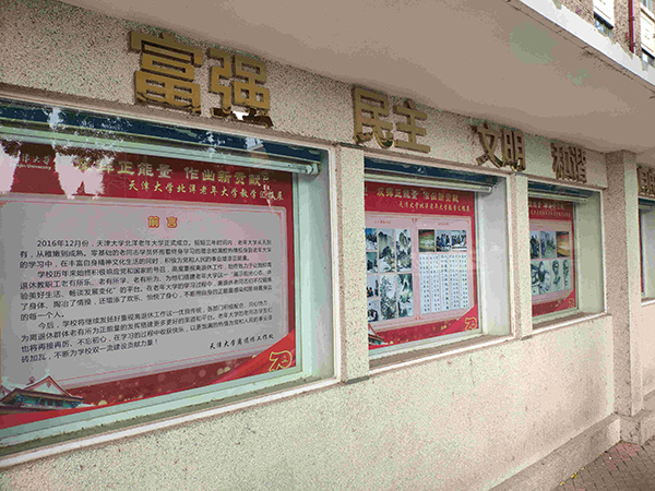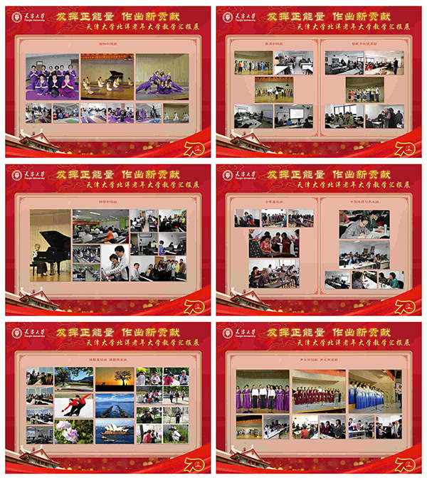 本站讯(通讯员王小轩)岁岁重阳,今又重阳。作为敬老月系列活动的一部分,“发挥正能量,做出新贡献——天津大学北洋老年大学教学汇报展”于10月7日起在天津大学卫津路校区九楼西侧橱窗及天津大学北洋园校区1895行政楼西侧橱窗进行展出。