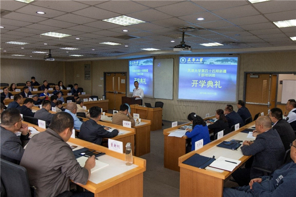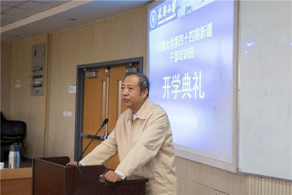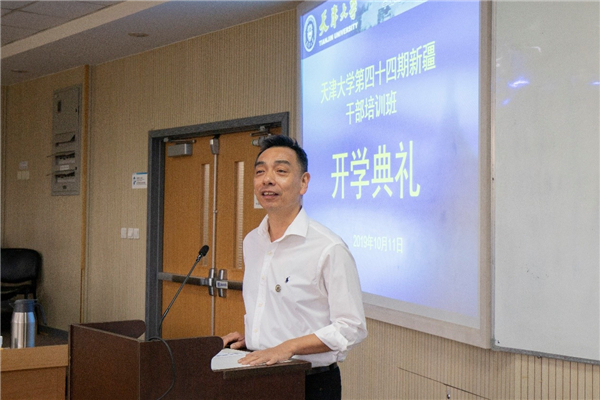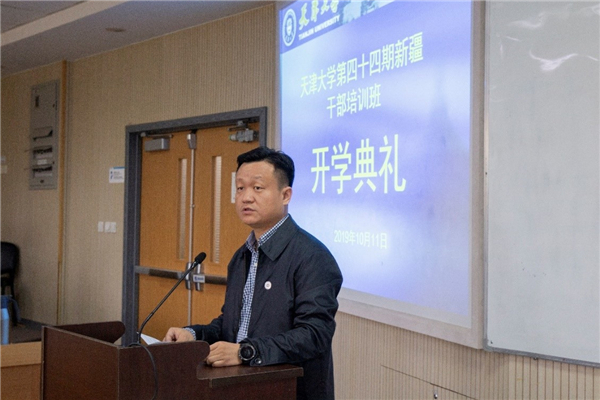 第四十四新疆培训班学员仝新峰代表全体学员发言。他提到,被组织选派有机会到天津大学学习,倍感荣幸,深知机会难得,责任重大,表示一定要端正态度,转变角色;严明纪律,落实要求;树立作风,展现形象。全体学员将不负组织信任与重托,认真学习,提升能力,增强本领,以积极奋进的姿态,努力在本次学习中取得优异的成绩,圆满完成培训任务。