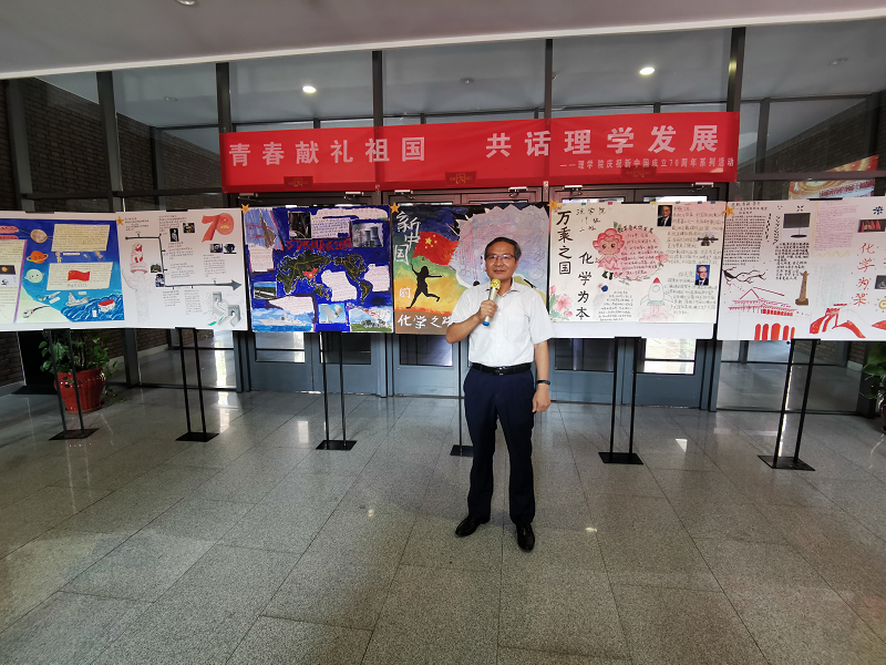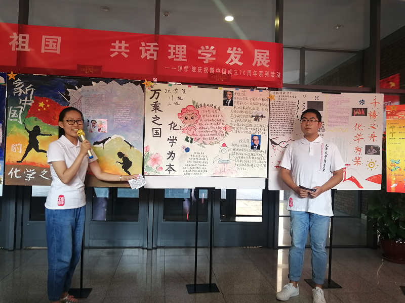本站讯(通讯员 刘培毅)结合“不忘初心、牢记使命”主题教育精神,激发学生的爱国之情和强国之志,天大理院学子积极采用多种方式表达对祖国的拳拳深情与深切祝福,共同庆祝中华人民共和国成立70周年。9月29日下午,理学院学生工作办公室于32教一楼大厅举办“青春献礼祖国,共话理学发展”特色展板设计展览活动。通过回顾过去70年中理学发展历程和展望未来学科前进方向,激励理院学子求实创新、锐意进取、不忘初心、牢记使命。