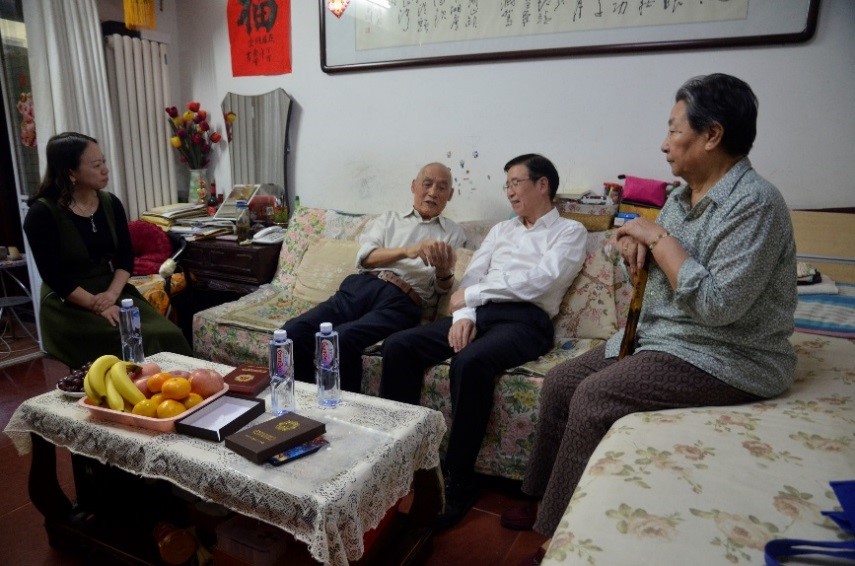 本站讯(通讯员 张海超)9月25日,在庆祝中华人民共和国成立70周年之际,天津大学党委书记李家俊带队来到离休干部、抗战老兵刘振昌家中慰问,与老同志亲切交谈,并为其带去了庆祝中华人民共和国成立70周年纪念章和慰问金。老干部党总支书记汪菲,副书记李春意陪同走访慰问。