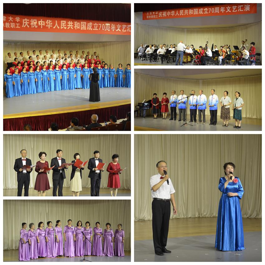 本站讯(通讯员 王小轩)为庆祝新中国成立七十周年,充分展示天津大学离退休教职工的精神风貌,2019年9月20日,离退休工作处与退休教职工协会组织“天津大学退休教职工庆祝中华人民共和国成立七十周年文艺汇演”,为老同志提供交流与展示老有所学、老有所乐、老有所为的正能量平台,为弘扬和传播中国特色社会主义优秀文化贡献力量,共庆祖国七十华诞。