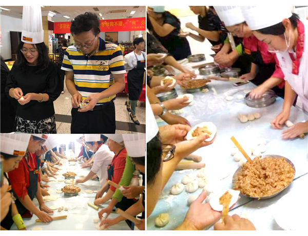 本站讯(通讯员 金中婷) 金秋送爽,丹桂飘香,为丰富广大教职工业余生活,由校工会主办,后勤保障部承办的“学做狗不理,‘包’你满意”活动于9月20日下午在卫津路校区学四食堂三层狗不理餐厅开展。天津大学党委常委、校长助理、统战部部长张力新,天津大学工会常务副主席马桂秋,后勤保障部部长尚宇光、副部长王梦宾应邀出席,40 余名老师参加了本次活动。
