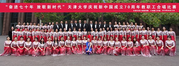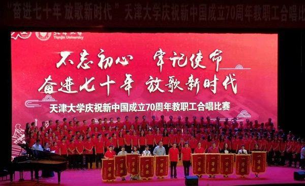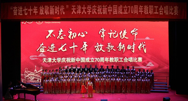 本站讯(通讯员 董玲)不忘初心,牢记使命;奋进七十年,放歌新时代。9月12日,天津大学庆祝新中国成立70周年教职工合唱比赛在北洋园校区求实会堂隆重举行。小幼医工作部与全校其他29支参赛队伍一起参加了活动,小幼医工作部以一首改编的《没有共产党就没有新中国》深情地表达了对党和祖国母亲的热爱。