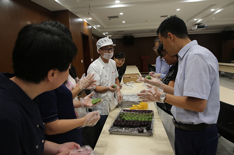 9月11日上午11点在化工学院50楼A332会议室举办了“弘扬中华文化,师生制作中秋月饼”主题活动,邀请专业面点师,讲授制作月饼的技艺,师生共同制作中秋月饼。