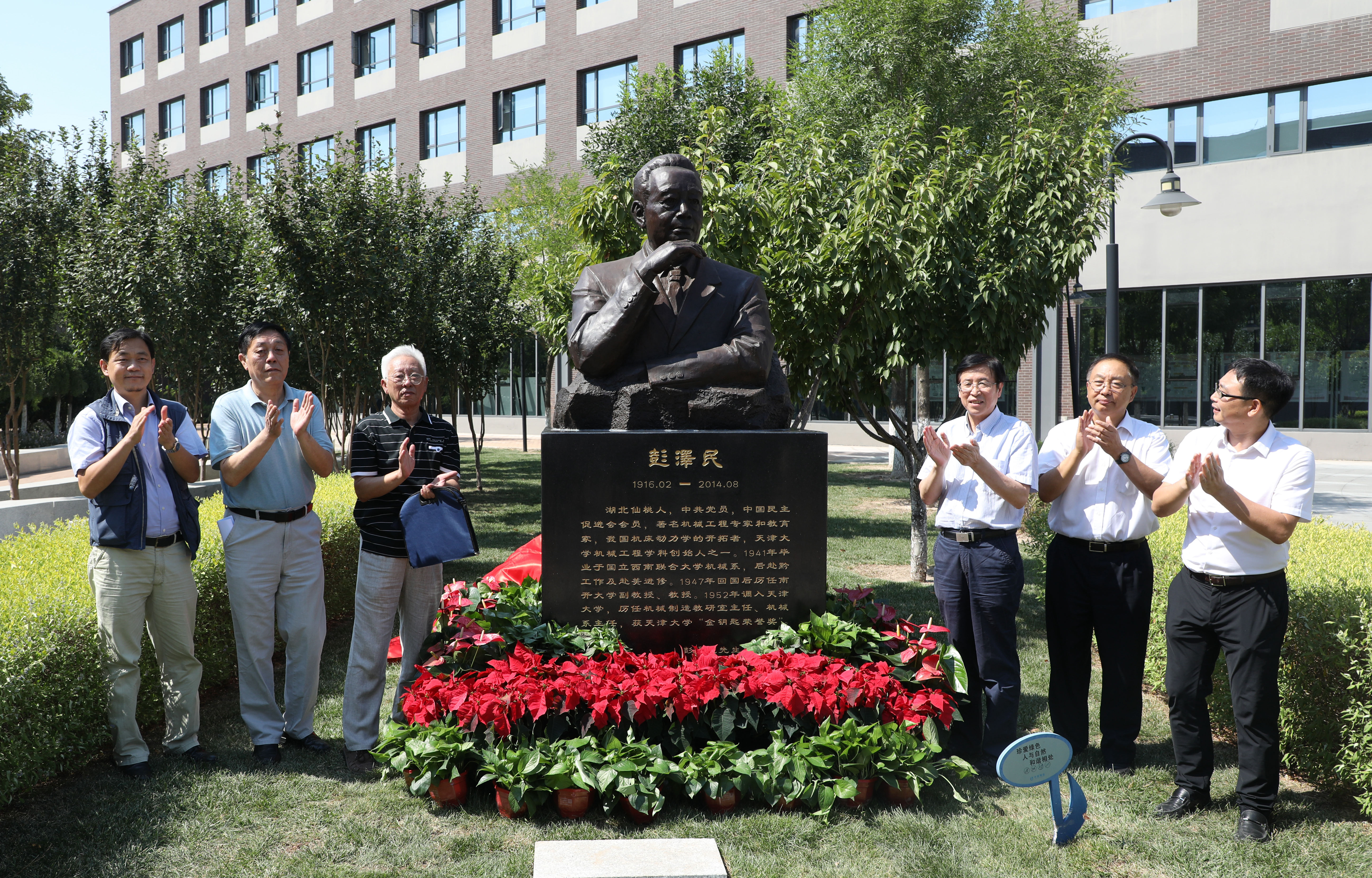 本站讯(通讯员 郑惠江 左亮 摄影 唐蒙)在第35个教师节来临之际,我国著名机械工程专家、教育家,机床动力学开拓者,天津大学机械工程系的主要创始人---彭泽民先生的塑像在北洋园校区37教学楼中庭揭幕。天津大学党委书记李家俊,彭泽民先生长子彭鹏,加拿大工程院院士顾佩华教授,机械工程学院领导班子成员,彭泽民先生学生和部分师生代表应邀参加仪式。
