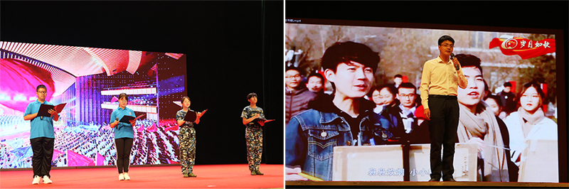 在化工学院庆祝新中国成立70周年系列活动启动仪式环节,老生代表赫英俊、马宇鑫,新生代表刀麒霖、杜晓冰表演诗朗诵,展示了化工学子的家国情怀和青春力量;辅导员赵书航带来主题宣讲,结合视频和理论回顾了新中国成立七十年来的光辉历程;辅导员赵书航、陈爽,新生代表王欣、王一洲与全体师生挥舞小国旗,共唱《我和我的祖国》,将仪式推向了高潮。