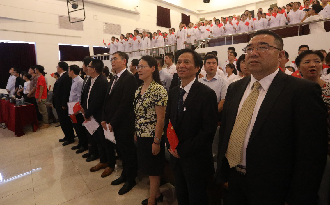 “我和我的祖国,一刻也不能分割,无论我走到哪里,都流出一首赞歌。”随着悠扬的音乐响起,嘉宾、师生们纷纷站起来,挥舞手中的国旗,满怀深情地歌唱《我和我的祖国》。在歌声中,医学部2019年新生开学典礼拉开了帷幕。