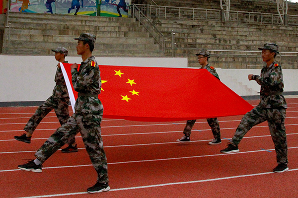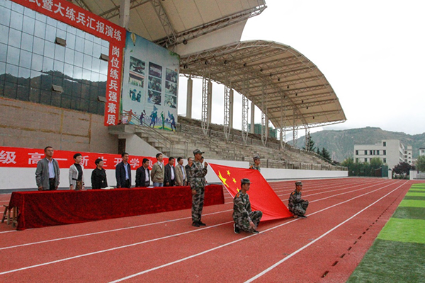 伴随着一声嘹亮雄壮的“齐步走”指令,护旗手展起一面鲜红的国旗,从各班队列前正步走过。在主席台前立定后,国歌响起,全体师生向国旗行注目礼。在甘陇大地这一方体育场上,他们完成了自己独特的纪念仪式。为了这个仪式,护旗手认真练习了队形和正步,清晨、夜晚的操场上都有他们的身影。校长陈雄讲道,“9月3日是中国人民抗日战争胜利纪念日,这是每个中国人都应该铭记的日子。中国人民经过十四年艰苦卓绝的斗争,取得了抗日战争的胜利,洗雪了旧中国的百年屈辱,争得了民族的独立,”他告诉学生们,“抗战虽然远去,但铭记历史才能开创未来。同学们要加倍努力,建设我们的祖国” 。学生代表在发言中也坚定地表示“我们走得再远、走到再光辉的未来,也不能忘记走过的路。勿忘历史,吾辈自强。”