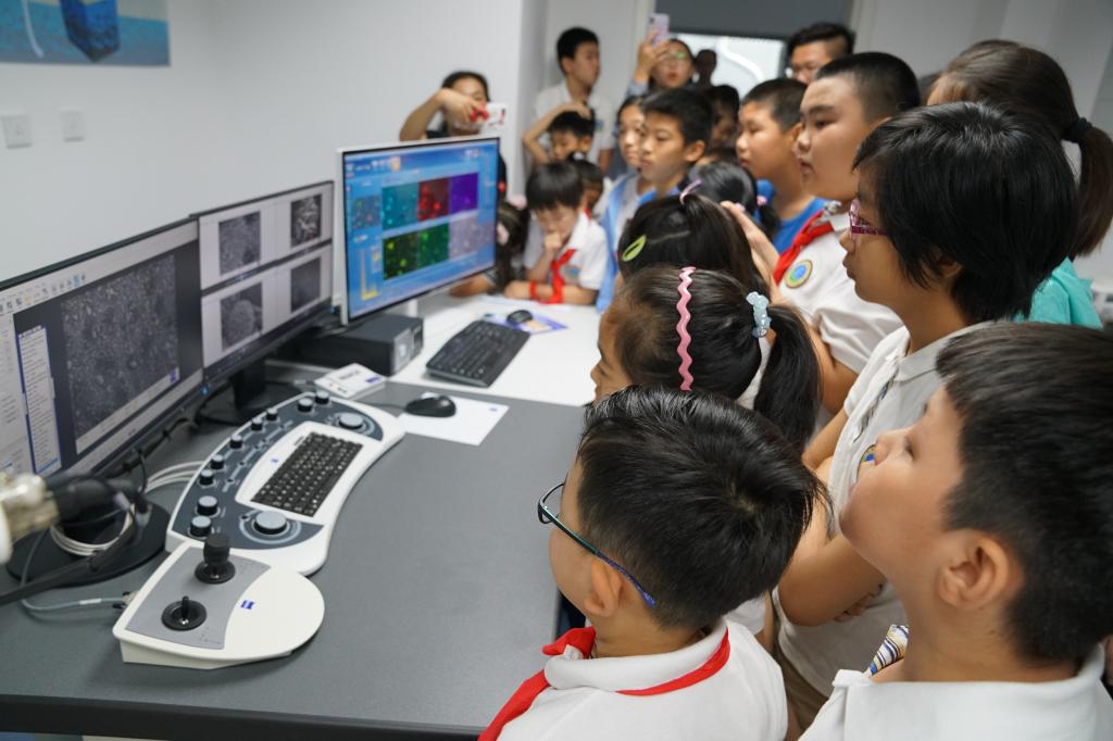 随后,带领现场人员参观实验室大厅的展板,普及科学知识和安全常识。安排关于“垃圾分类”及学院各类消防设施使用的互动小游戏,教授小朋友垃圾分类原则及消防设施的正确使用。“显微镜观察”实验让小朋友们实地操作并观察曲霉和洋葱表皮。在化学实验室现场展示神奇的“振荡反应”,参观人员都表现出浓厚的兴趣。大型仪器平台展示环节,让大家有机会了解高端仪器的专业用途及安全事项,现场展示扫描电镜对矿物和颗粒物的微观结构的分析。针对小朋友的特点,安排观看了安全教育动画视频。天大附小的师生们在参观后表示受益匪浅,准备充足,让大家体会到了实验的乐趣以及安全的重要性。本次活动普及了科普及安全知识的重要性和垃圾分类的常识,安全意识和责任感的养成要从小抓起。