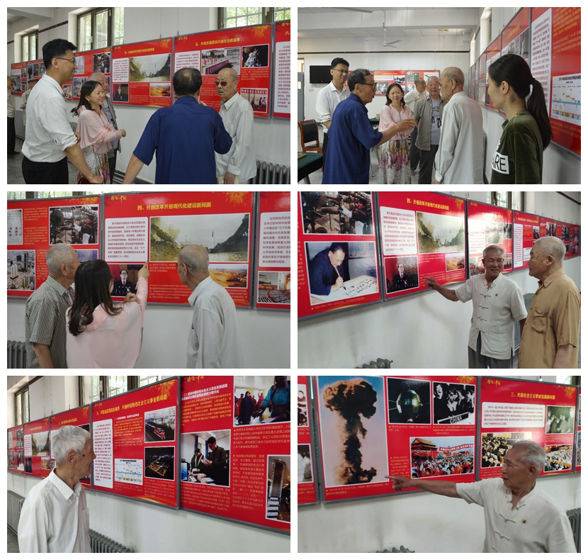 老干部党总支书记汪菲、副书记李春意陪同离休老干部们观看展览内容,共同回忆70年里的风云岁月,盛赞70年间取得的伟大成就,并为新时代中国的繁荣腾飞感到骄傲自豪。
