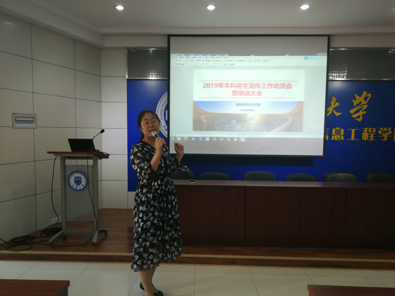 会上,柴文革首先向与会人员分析了2019年招生宣传工作的形势,并就招生政策、转专业、平行志愿等学生和家长关心的问题进行了简要介绍,对各位招生老师提出了希望和要求。随后,刘丽萍做了招生宣传工作专题培训。从招生政策、志愿填报相关基础知识、招生计划变化、招生大类设置、新专业情况、招生宣传工作策略、学生志愿填报指导及常见问题解答等方面做了解读。希望各组招生宣传工作的老师以发自内心的热情和饱满的精神面貌,代表天津大学师生,走向负责地区,宣传我校,为学校的再发展贡献一份力量。