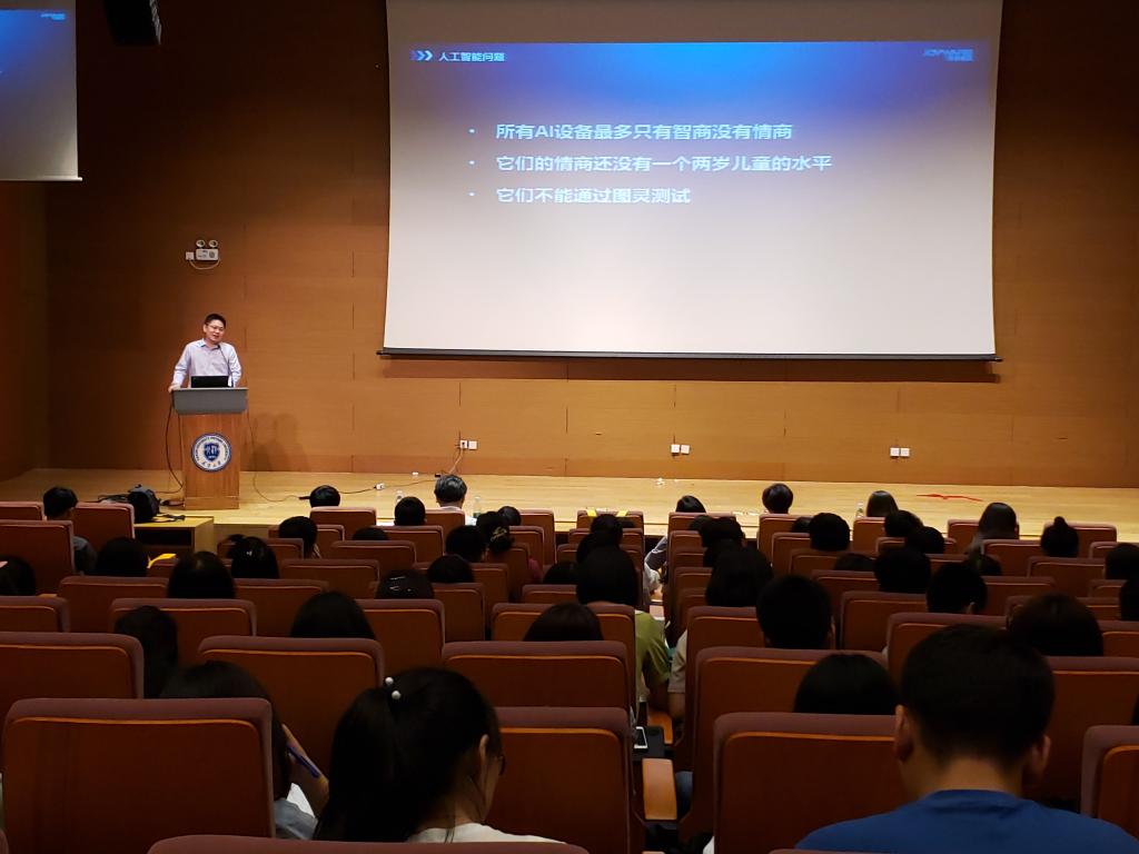 启动仪式结束后,由杭州中威电子股份有限公司人工智能专家胡俊博士做了题为“情感人工智能对心理健康教育的变革及思考”的报告。本报告原为2019年4月9日在教育部高等学校心理学类专业教学指导委员会、中国心理学会教学工作委员会及普通高等学校学生心理健康教育专家指导委员会主办的首届全国高等学校《大学生心理健康》教育教学研讨会上的现场专题报告。心理健康教育中心将该报告引入天津大学,旨在加深广大师生对于前沿技术在心理健康教育实务工作中的应用的理解,及对未来工作创新提供思路和方向。本次报告会上胡俊博士介绍了视频情感人工智能的原理、工作方式以及在实务工作中的具体应用。并与来自医学部、智算学部、生命科学学院、教育学院、建工学院的同学们就情感人工智能在教育评估、中风风险预测、心理咨询实务应用以及相关技术可能带来的伦理风险等方面进行了互动交流。