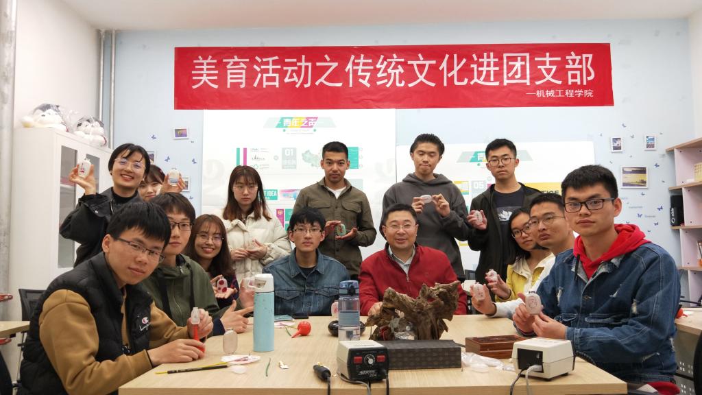为了让同学们进一步了解中国的文化底蕴,增强文化自信,学院于4月27日举办了“美育活动之传统文化进团支部”活动。本次活动的艺术门类为“玛瑙内画”,由非遗项目传承人张昭老师授课,张老师向大家简述了鼻烟壶的由来,介绍了其流行并产生雕刻和内画的装饰方式的原因,给大家分发了鼻烟壶以及专门的画笔,告知了大家握笔的正确姿势以及内画的作画顺序,活动过程中,同学们专心致志地进行着自己的创作,在精细的运笔过程中体会着中国传统文化艺术家们身上的工匠精神,最后同学们拿着自己创作的作品与张老师进行了合影留念,沉浸其中,意犹未尽,在短短的两个小时里文化传承在两代人之间悄然传递。