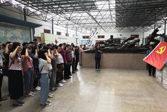 下午,师生们乘船进入华北明珠“白洋淀”,在雁翎队纪念馆,党员师生重温了“小兵张嘎”的故事,回顾了雁翎队在中国共产党的领导下,在极其艰苦的环境中利用淀区芦苇遍布、河沟交错的有利地形,开展游击战、痛击侵略军的光荣历史和英勇事迹。药学院师生党员在陈书记带领下重温入党誓词。白洋淀红色之行给师生党员们留下深刻印象,大家纷纷表示将牢记先辈光荣传统,传承雁翎精神,弘扬爱国精神、革命精神,勿忘国耻,砥砺前行,不忘初心,牢记使命,在新时期做出新贡献。