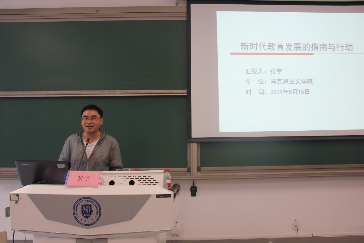 研讨结束后,应学院党委邀请,马克思主义学院副院长张宇教授做了题为“新时代教育发展的指南与行动”理论辅导报告,报告从现代化需要教育优先发展、教育现代化先要举旗定向和努力办好人民满意的教育三个方面进行充分阐述,以唯物辩证史观看待现代化与教育发展和国家发展之间的关系,以中国近代以来特别是中华人民共和国成立以来教育政策的的发展变化为依据阐明了举旗定向在教育现代化中的重要性,引用习近平总书记系列重要讲话论述了办好人民满意教育的重大意义。