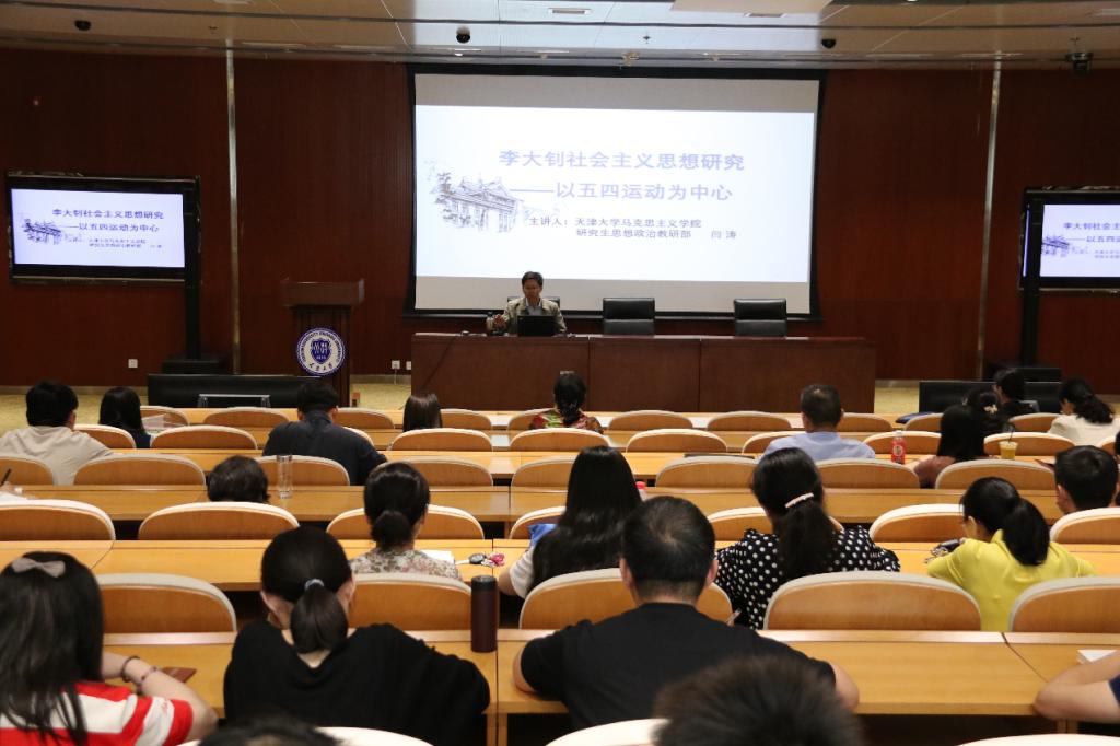 本站讯(作者 景晖)2019年5月14日下午,机关党委邀请天津大学马克思主义学院研究生思想政治教研部闫涛老师作客第四期机关党员大讲堂,为机关教工做“李大钊社会主义思想研究——以五四运动为中心”专题讲座。