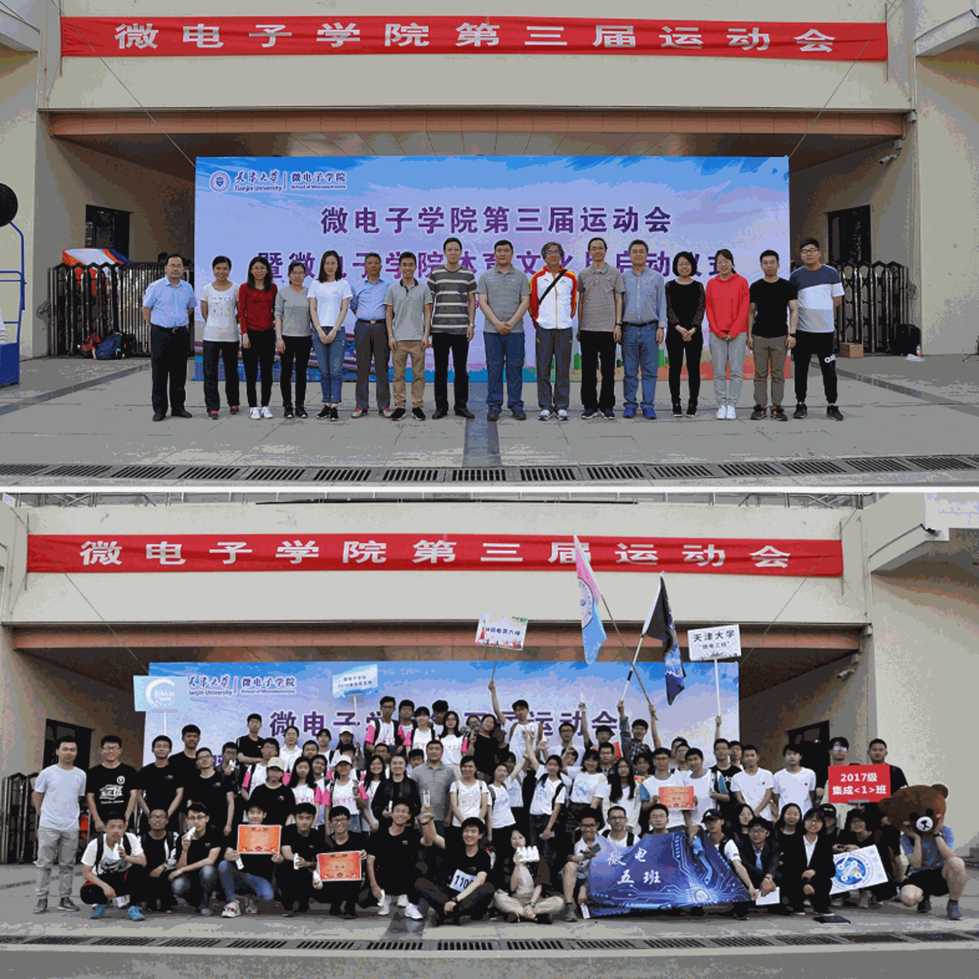 本站讯(通讯员 徐义桐)5月10日下午,天津大学微电子学院第三届运动会暨学院体育文化月启动仪式在卫津路校区体育场举行。微电子学院院长马凯学,党委书记杨晋生,副院长徐江涛、刘强,党委副书记韩旭,学工办副主任、团委副书记王玥,辅导员尹明、徐义桐,专业教师代表以及近500名学生共同参加运动会开幕式。
