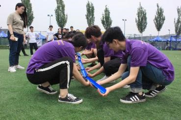 在随后的比赛项目中,欢笑声、呐喊声回荡整个素拓基地,“毛毛虫”、“旋风跑”“、同心鼓”、“袋鼠跳”、”挑战NO.1”等一系列项目有序开展。虽然中途下起了雨,但素拓赛场上同学们热情不减,大家在活动中奔跑、在汗水中品味快乐,更通过这种“体验式学习”的方式,提升团队协作、沟通执行、信任和合作等各项心理素质。
