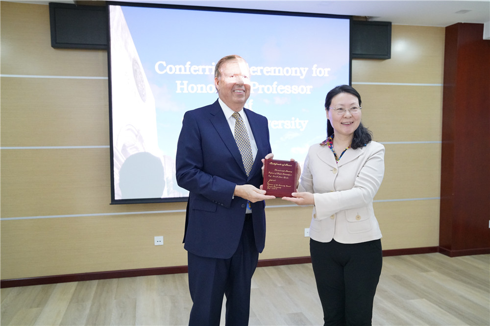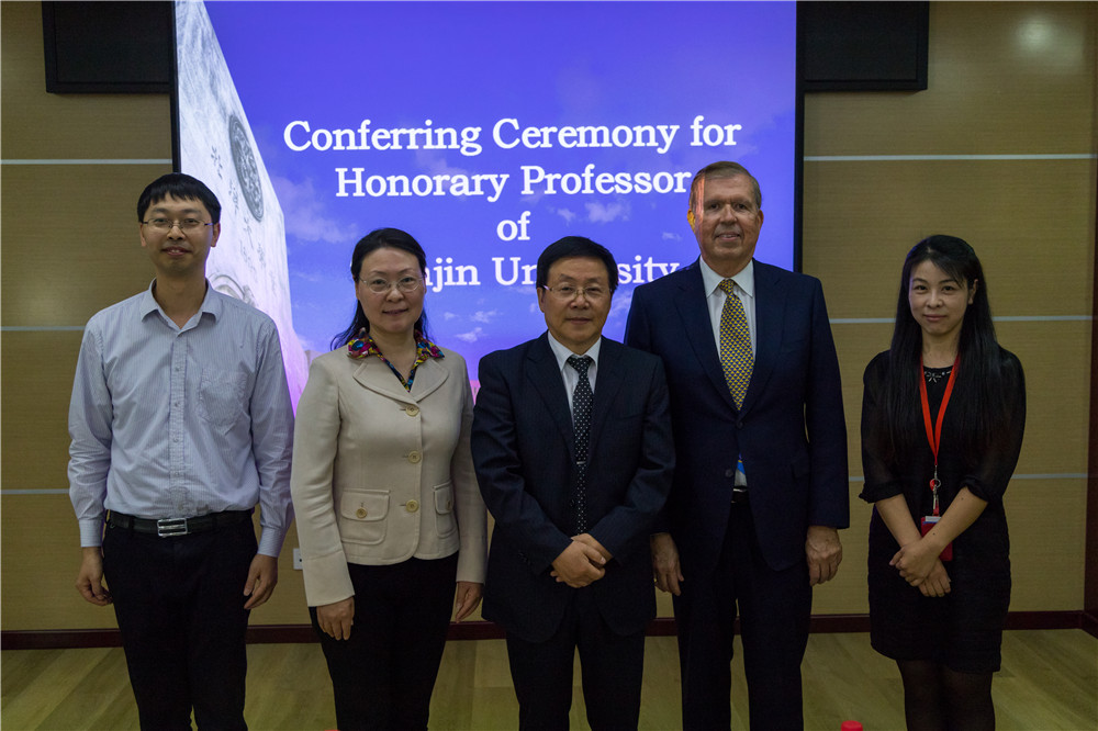 本站讯(通讯员 王珊珊)2019年5月3日下午,美国特拉华大学Donald L. Sparks教授学术报告会暨天津大学名誉教授授予仪式在地科院221报告厅举行。天津大学党委副书记赵美蓉、地科院院长刘丛强院士等出席了授予仪式。仪式由国际合作与交流处处长张振主持。