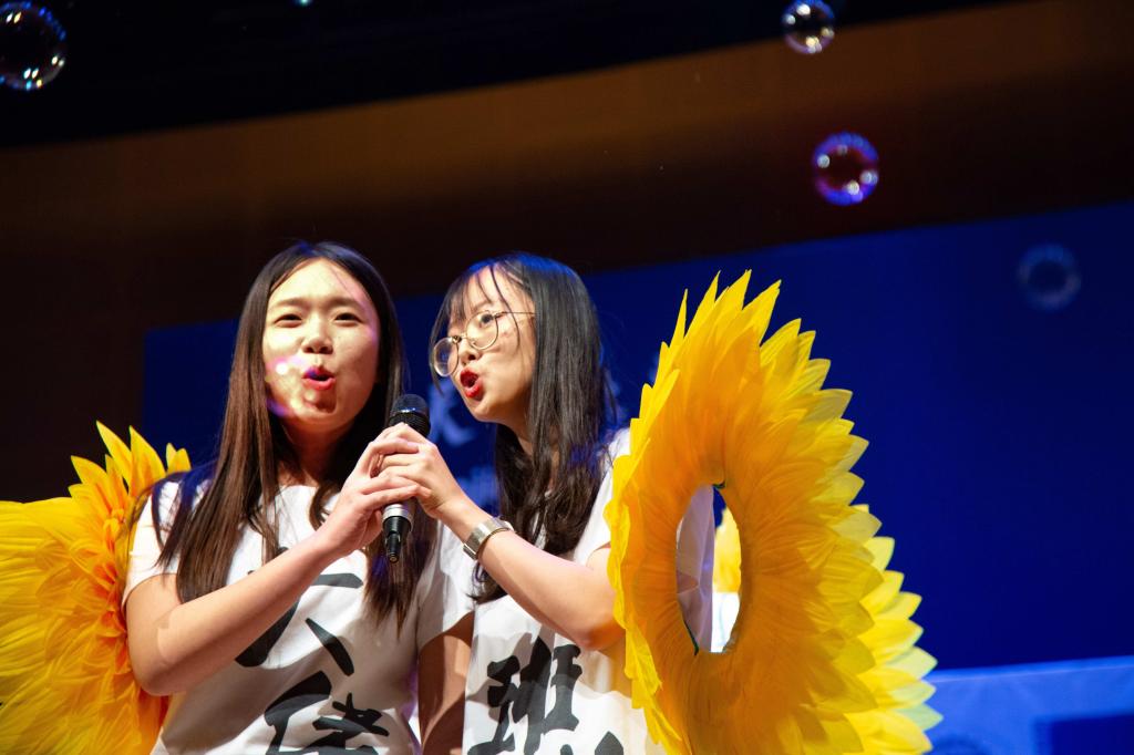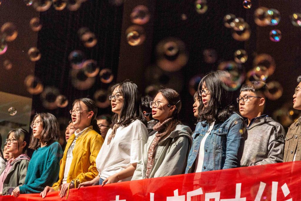 晚会的最后,17级本科生辅导员郑超为同学献唱,将晚会推向了高潮。师生情、同学情和对先辈的怀念,让每位同学都沉浸在晚会之中,大合唱《夜空中最亮的星》唱响今夜的北洋园。