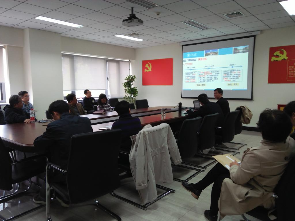 曹树谦首先介绍了课程思政的发展历程,分享了对课程思政的理解。以《理论力学》为例,他详细讲述了课程思政建设的三个阶段、六个案例及两种类型,并与大家分享感受:作为教师,要将“大道理”变小故事,把三言两语不简单的“专业课程”与“思政”相融合;同时,打铁还需自身硬,教学要有“真本领”,不断培养和提升自身素质,真切传递“立德树人师之本,教书不能忘育人”的理念。党课后,曹树谦和与会人员座谈,围绕课程思政建设过程中的具体方法和具体思路展开展了热烈的讨论。