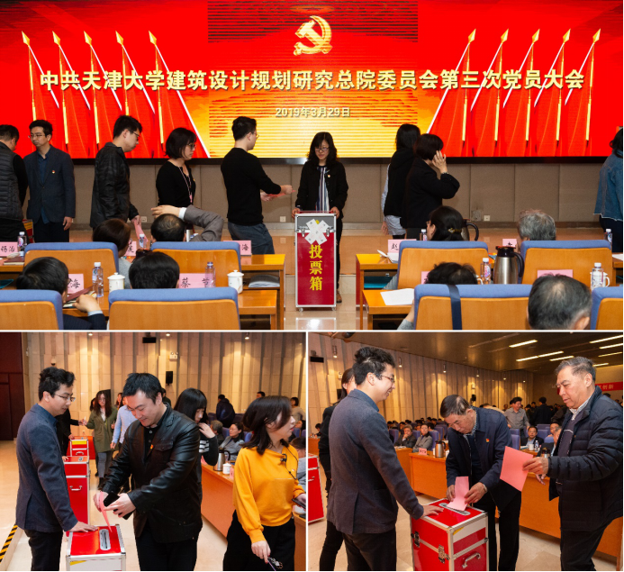 按照《中国共产党章程》和《中国共产党基层组织选举工作暂行条例》,采用无记名投票方式和差额选举的办法,大会选举产生中共天津大学建筑设计规划研究总院第三届委员会委员(以姓氏笔画为序):于庆雷、安海玉、李绍燕、张锡治、祝捷、袁大昌、贾莉、谌谦、程万海;中共天津大学建筑设计规划研究总院第一届纪律检查委员会委员(以姓氏笔画为序):于庆雷、于敬海、刘洪海、刘晓龙、胡振杰。