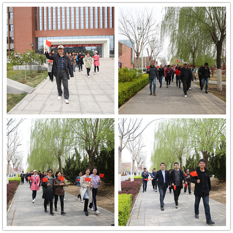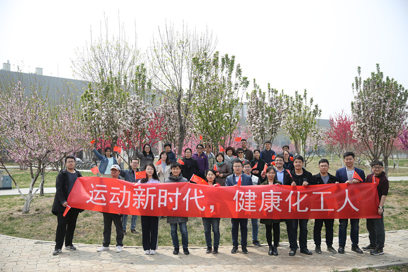 随后,化工学院教师开始了健步走活动。为了给新中国成立70周年献礼,老师们手执国旗,昂首挺胸,从化工学院出发,沿明德北道一路向西,行至大通学生中心,后延明德南道返回化工学院。在春风送暖,万物复苏之际,老师们迈着矫健的步伐行走在红花绿树之间,沿途欣赏着春日的风景,老师们均表示既锻炼了身体又愉悦了身心。