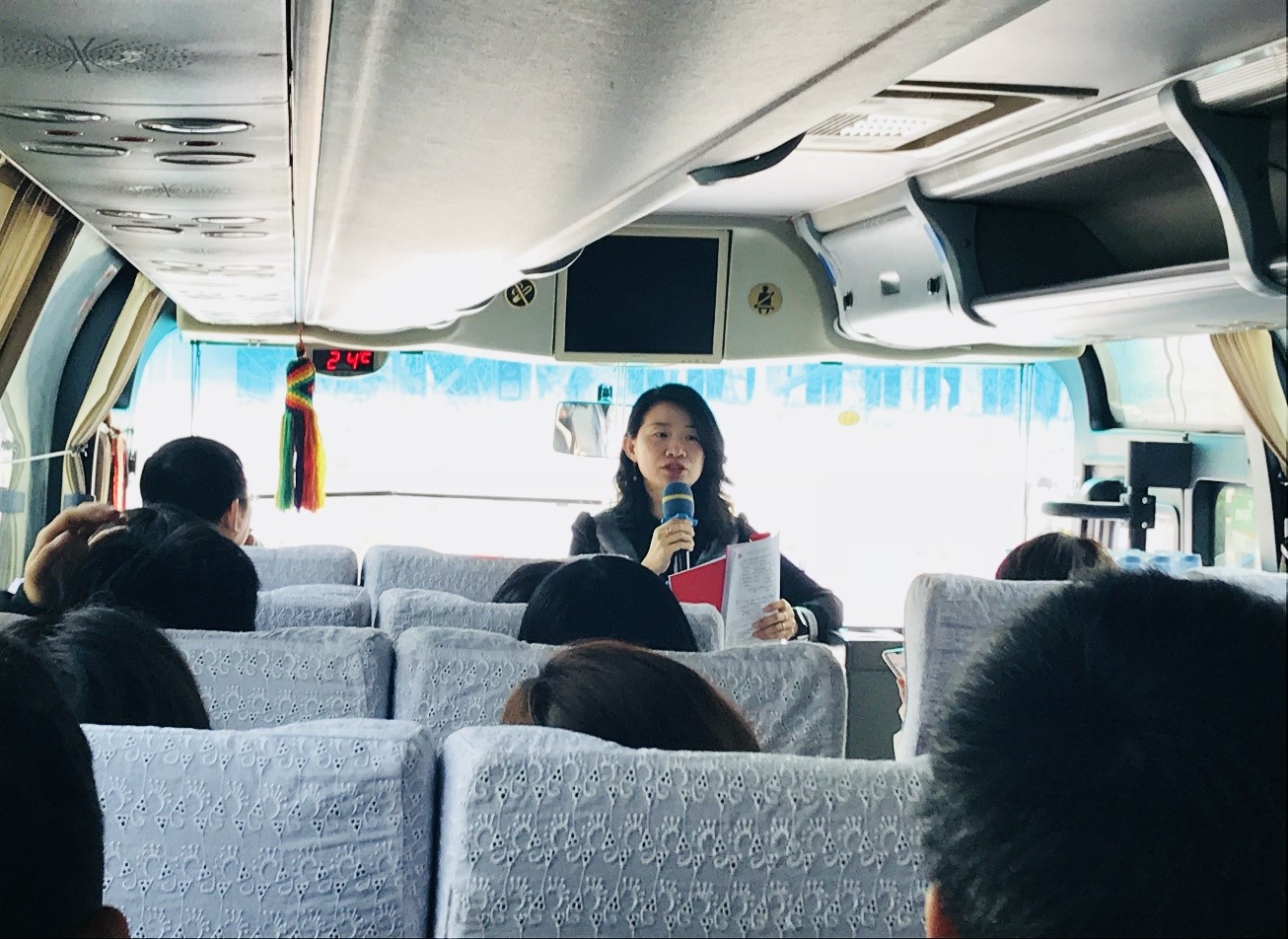 在前往北洋工学院旧址的路途中,党委教师工作部副部长王娟带领大家一起学习了习近平总书记在全国学校思想政治理论课教师座谈会上的讲话精神,她从思政理论课的基本定位、开设思政课的必要性、讲好思政课的重要基础、对思政理论课教师的六个要求、思政理论课的八个相统一、组织保障等六个部分为各位党员师生进行了系统而深入的讲解。